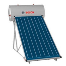 Captador solar térmico por termosifón, completo, para instalación individual, modelo Premium F1/TSS 200-2/FCC220 2E "BOSCH", compuesto por: un panel, FCC220-2S CTE TSS, de 1032x2026x66 mm, superficie útil 1,936 m², rendimiento óptico 0,761, coeficiente de pérdidas primario 4,083 W/m²K y coeficiente de pérdidas secundario 0,012 W/m²K², según UNE-EN 12975-2, compuesto de: caja de fibra de vidrio con chapa posterior de acero galvanizado y esquinas de plástico, cubierta protectora de vidrio, absorbedor selectivo recubierto con cromo negro, aislamiento térmico de lana mineral de 25 mm de espesor, estructura de soporte de aluminio para cubierta plana, kit de tuberías y accesorios de conexión de acero inoxidable, interacumulador horizontal, TS 200-2E, de doble envolvente de 195 litros, con interior de acero esmaltado, exterior de acero galvanizado lacado en color blanco, aislamiento de poliuretano libre de CFC, resistencia eléctrica de 1,5 kW/230 V, ánodo de magnesio y vaso de expansión para el circuito primario. Incluso líquido de relleno para captador solar térmico. Totalmente montado, conexionado y probado.